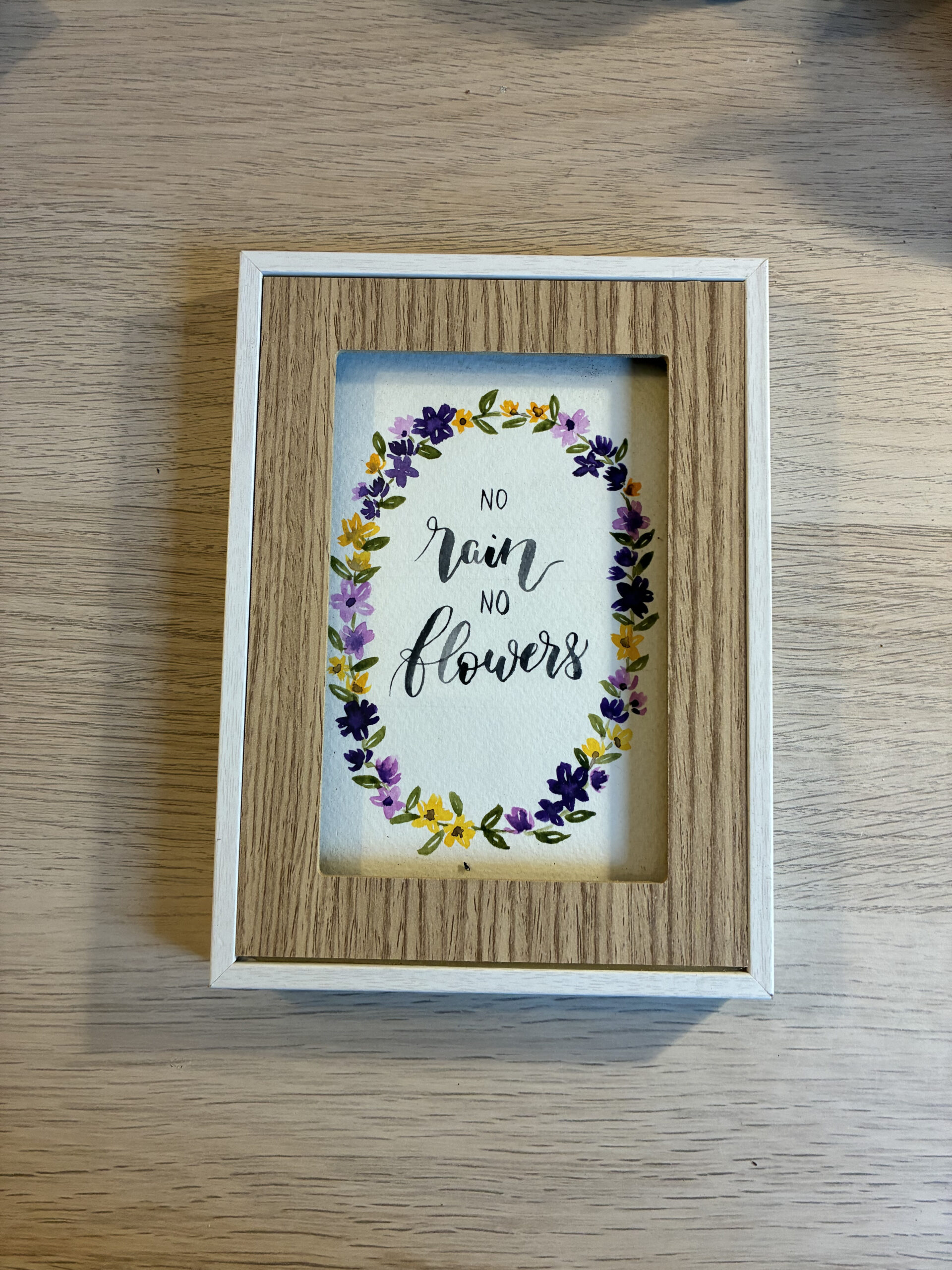 Cadre fleurs fait main, peint à l’aquarelle et texte écrit au pinceau